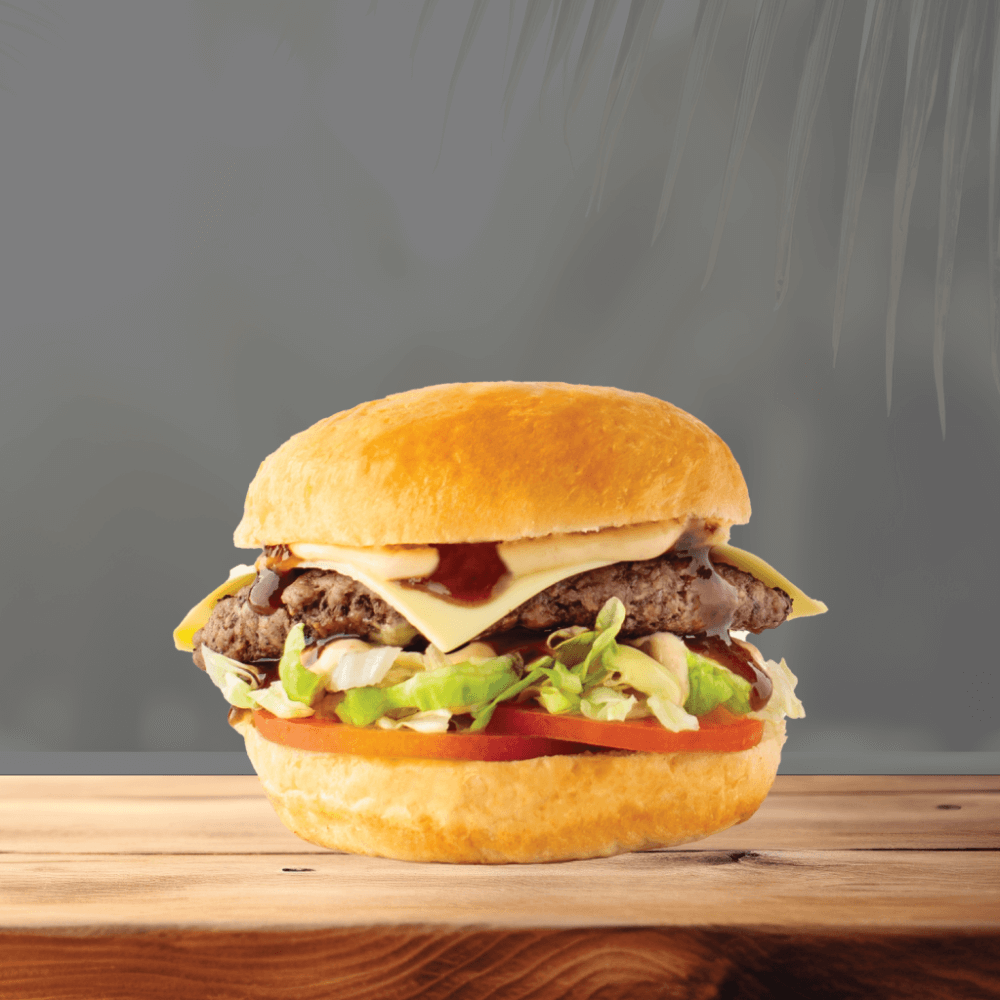 GF Potato bun, smashed beef patty, lettuce, tomato, cheese, bbq sauce, secret sauce.